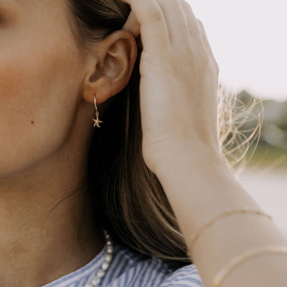 The Starfish Hoops are the cutest ocean-themed accessory to add to your wardrobe! 14k gold vermeil, good for sensitive ears, and wear and tarnish resistant.