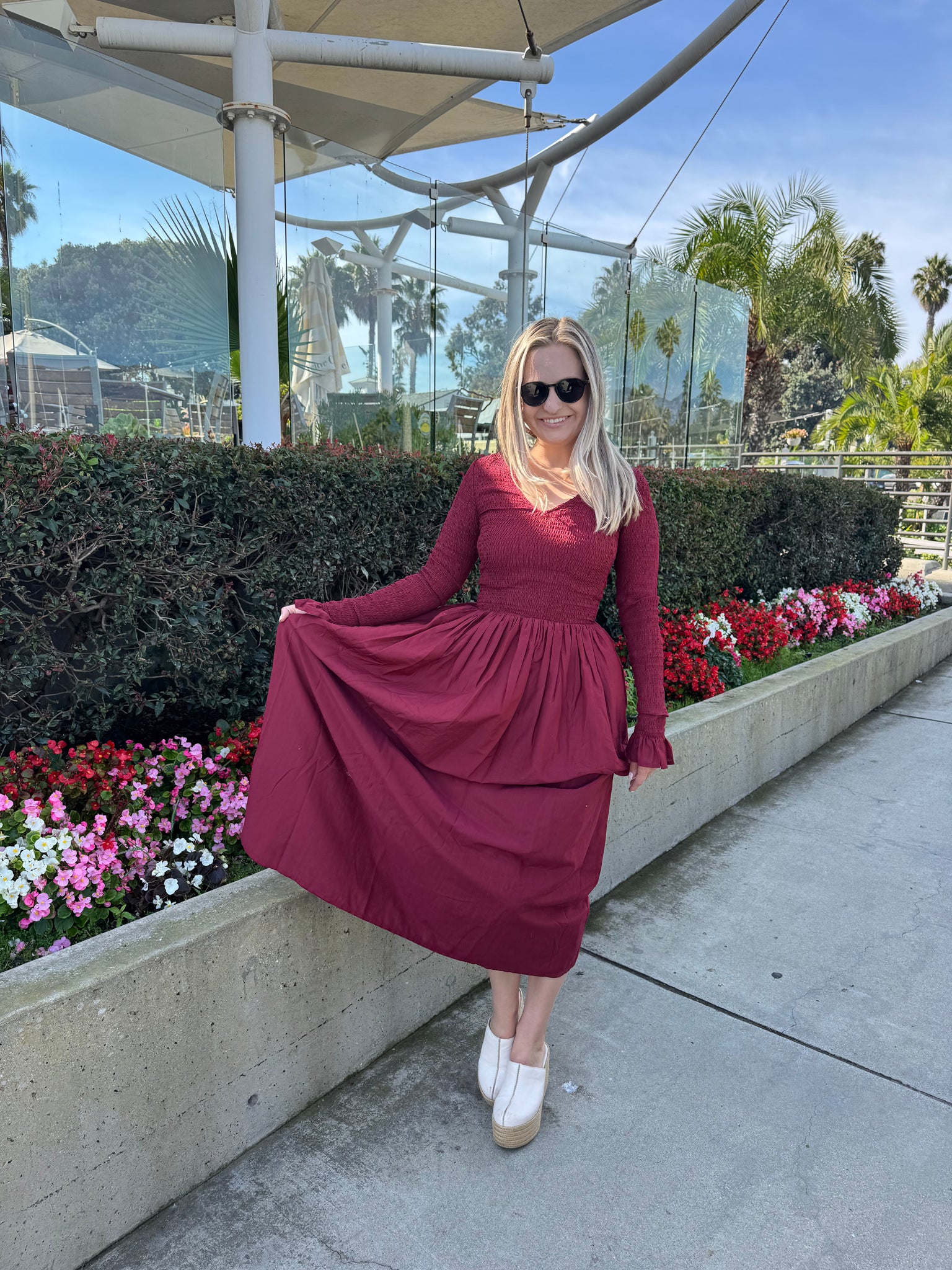 This dress is crafted from high-quality cambric fabric and designed with a smocked bodice and a flattering V-neckline. Available in two colors, it’s a versatile piece that combines comfort and timeless femininity.